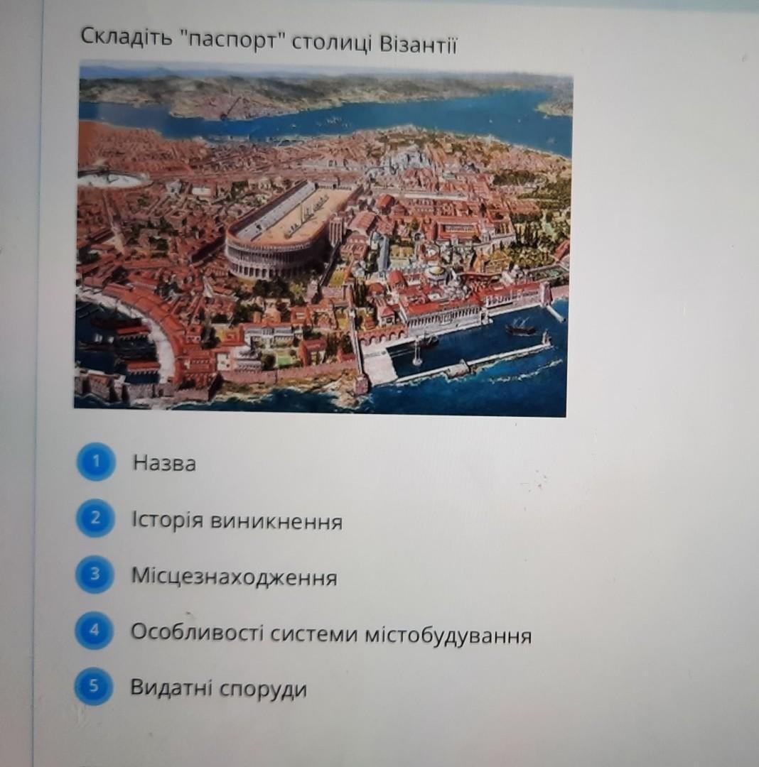 3. Константинополь, Костянтинополь, Царгород, або Цар-місто — місто на європейському березі Босфору в місці, де він поєднується із затокою Золотий Ріг. Столиця Східної Римської, потім Візантійської імперії, засновано у 324—330 рр. імператором Костянтином І Великим.