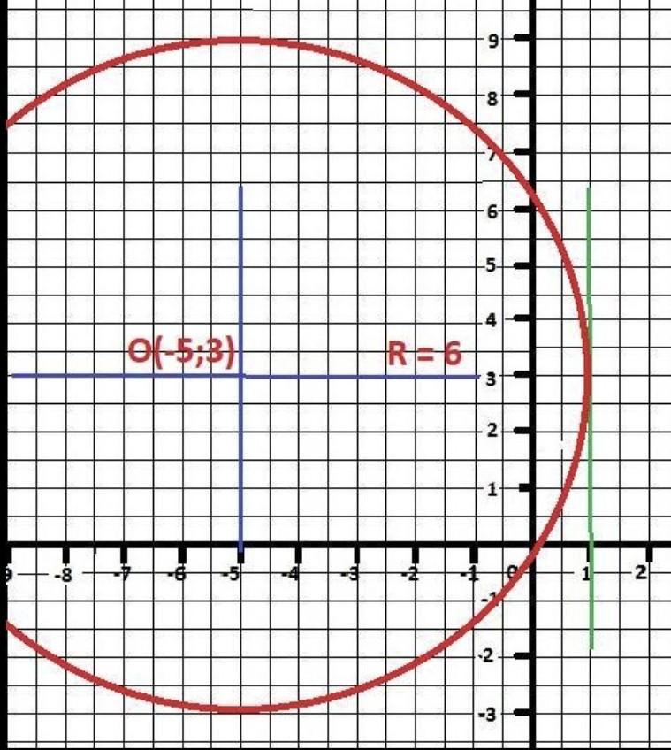 (X - 5)² + (Y + 3)² = 6² = 36 - уравнение окружности - ответ