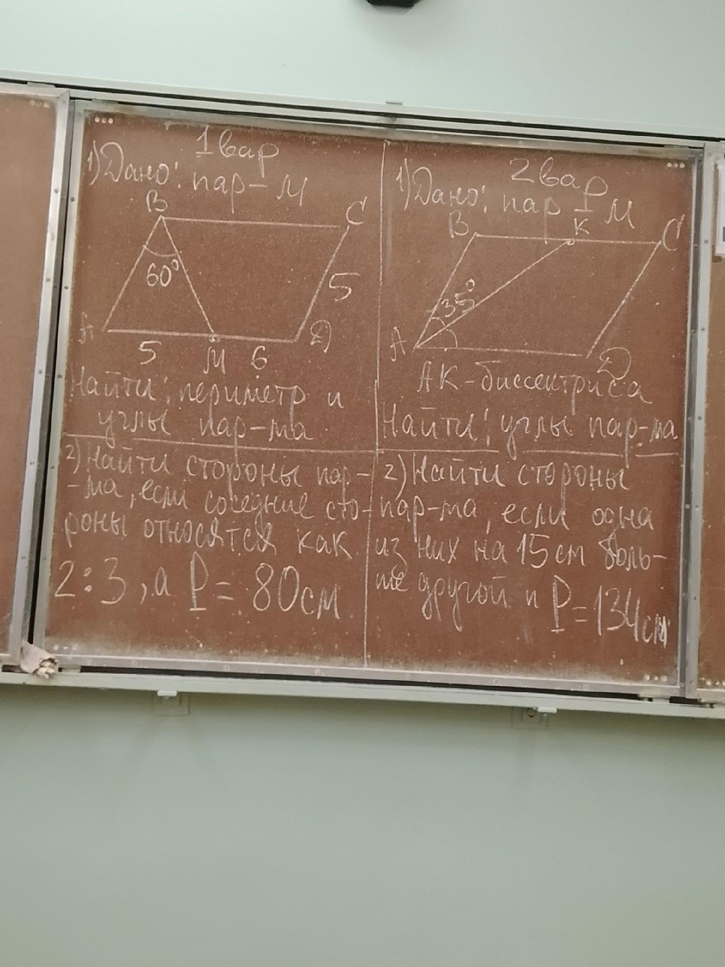 2. Найти стороны параллелограмма, если одна из них на 15 см больше другой и P=134cm