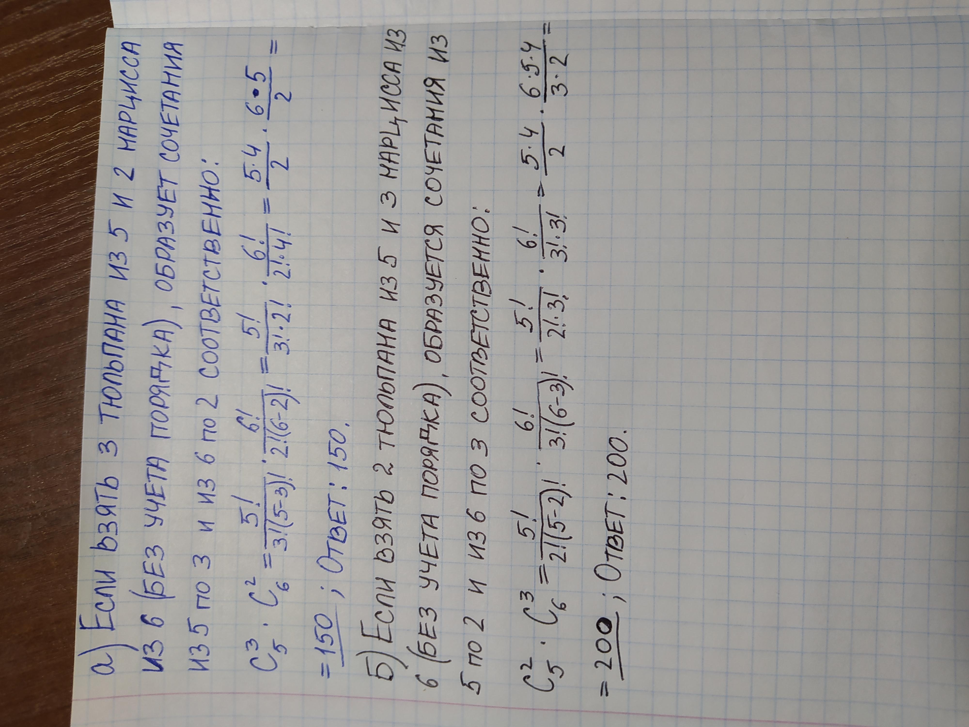 3. Имеются 7 тюльпанов и 6 нарциссов. Сколькими способами можно составить букет, если: а) в букете 3 тюльпана и 2 нарцисса; b) в букете должны быть 4 тюльпана или 3 нарцисса?