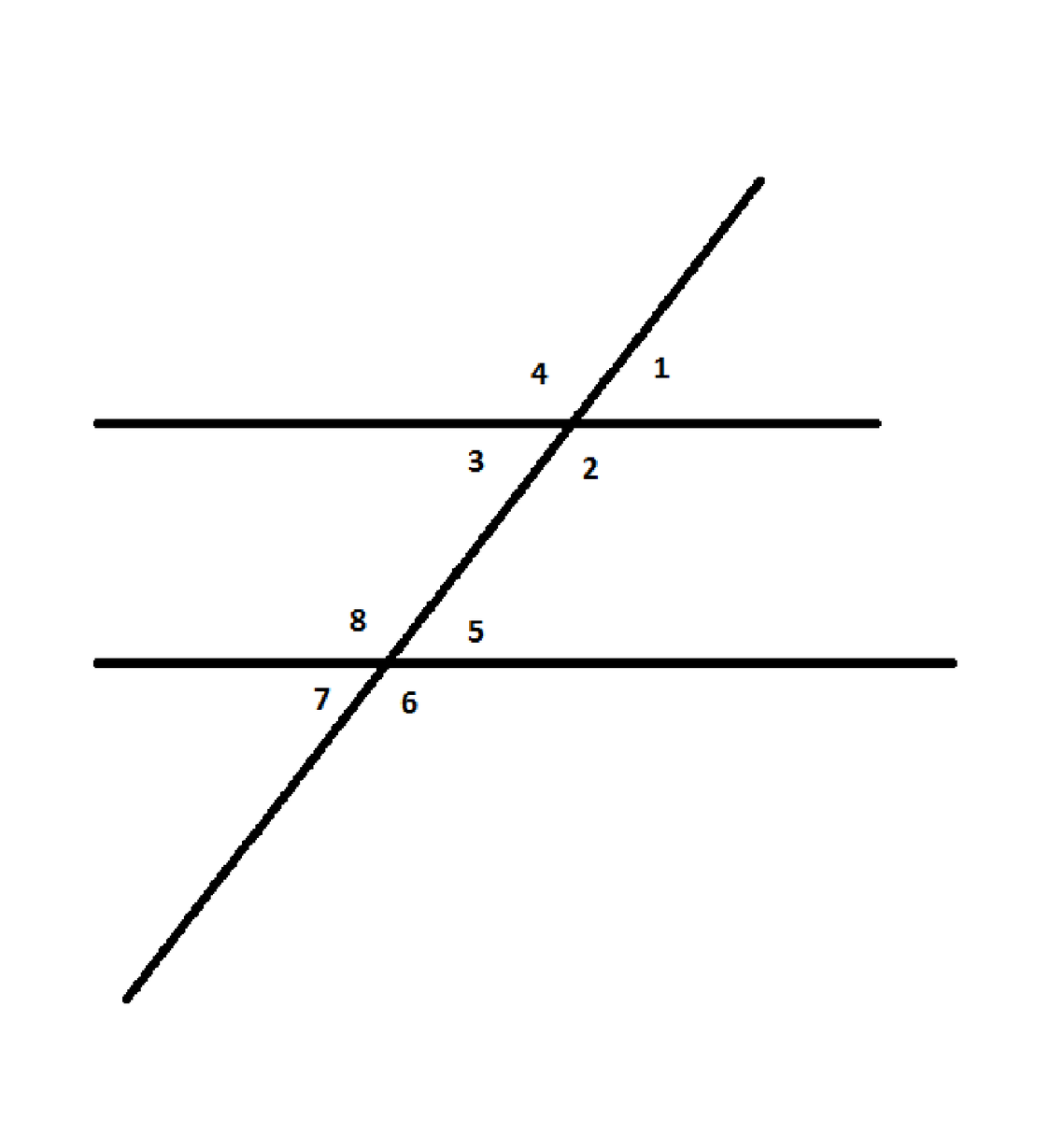 Один из углов, образовавшихся при пересечении двух параллельных прямых секущей, равен 72 градусов. Найдите величины остальных семи углов