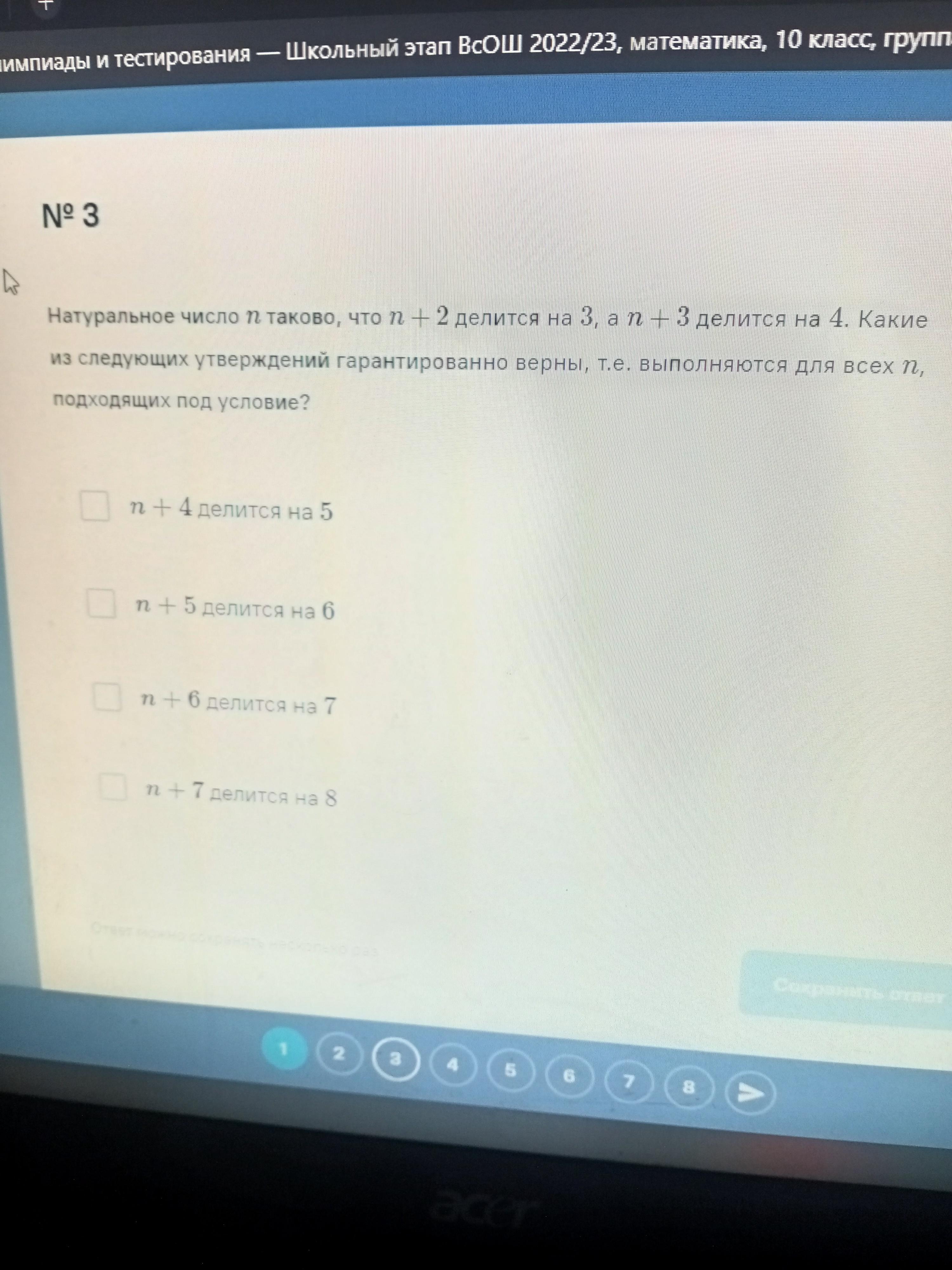 Если n=1 то 1+2 можно желить на 3 1+3 на 4 1+4 на 5 1+5 на 6 1+6 на 7 1+7 на 8