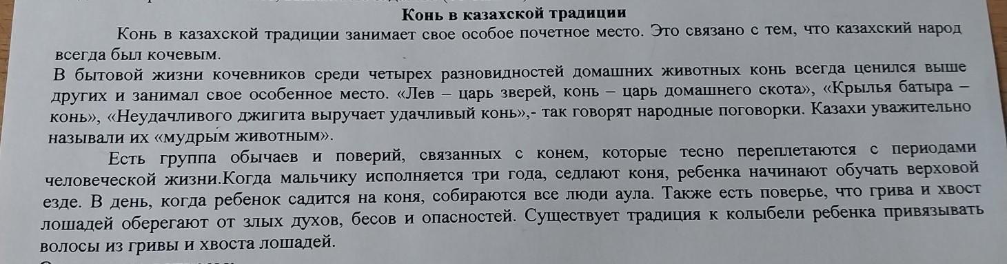 5. Найти в тексте причастие и выполнить «словесный» портрет Конь в казахской традиции