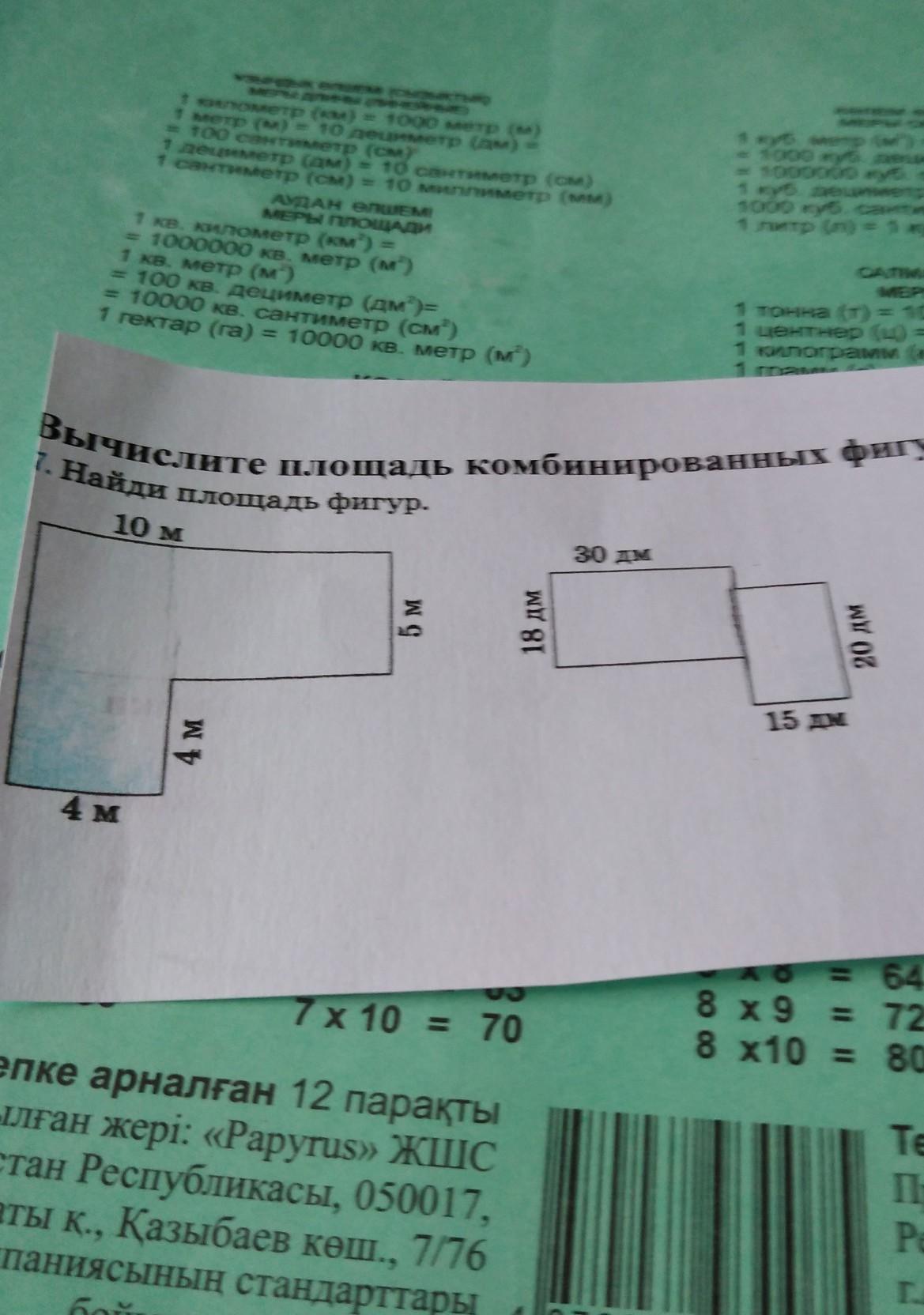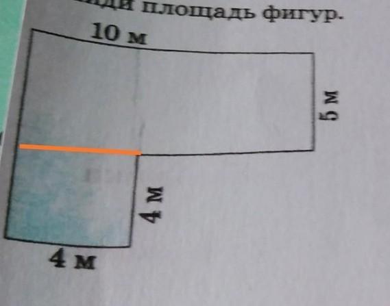 Разделим данную фигуру на прямоугольник и на квадрат и найдем их площадь: