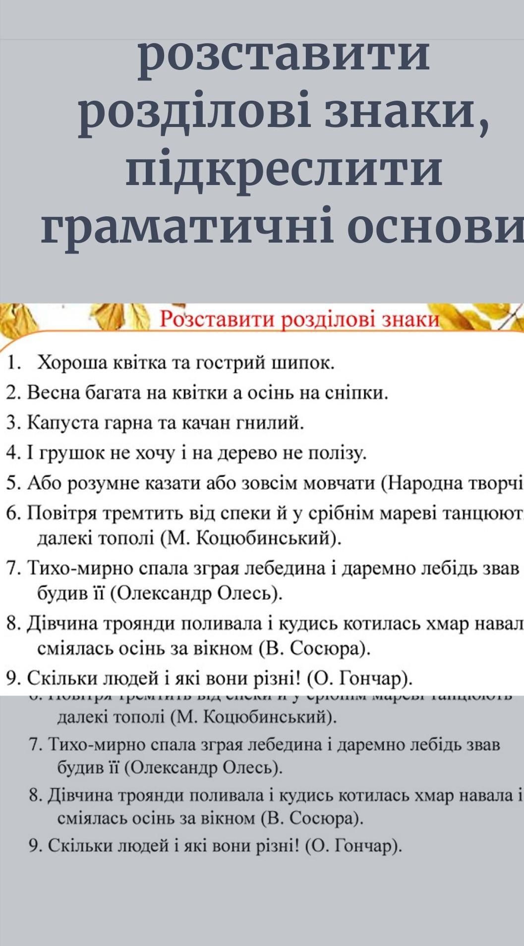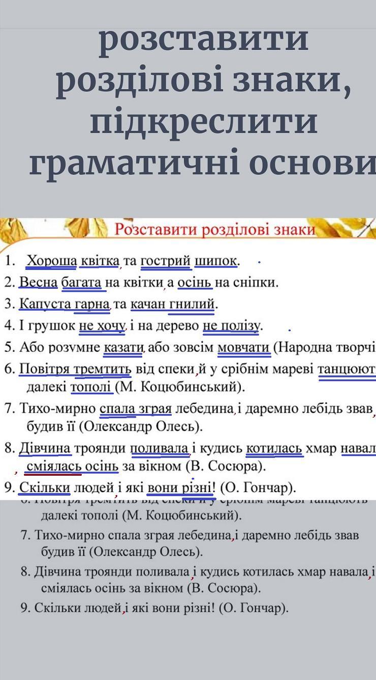 РОЗТАВИТИ РОЗДІЛОВІ ЗНАКИ І ПІДКРЕСЛИТИ ГРАМАТИЧНІ ОСНОВИ