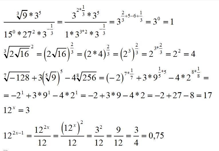 Известно,что 12^х=3.Найти 12^(2х-1).Не понимаю где обозначение ir.Не вижу