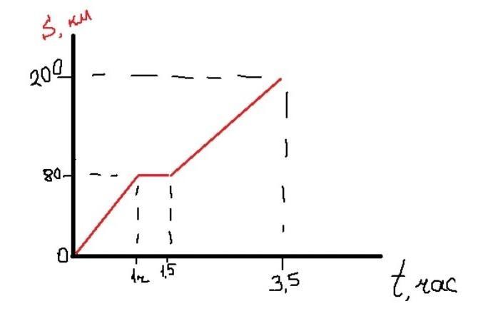 3. Автобус ехал 0,5 ч со скоростью 20 км/ч, затем 1 час стоял, а потом ехал еще 3 часа со скоростью 80 км/ч. Постройте график зависимости пройденного пути от времени. даю 50 балов срочно