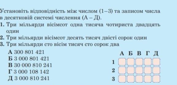 1 - Б; 2 - Д; 3 - Г