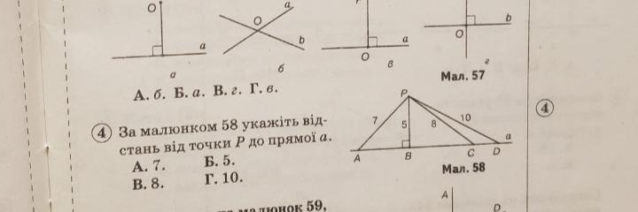 Відповідь : Б 5 Відстань- це перпендикуляр