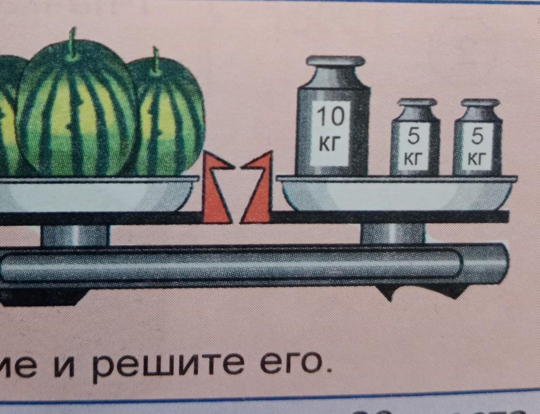Если посмотреть на рисунок то мы видим что арбузы и гири равны, то есть мы можем так же написать х+у+у=10+5+5 (ответ может быть не точными в ходе составления уравнения)