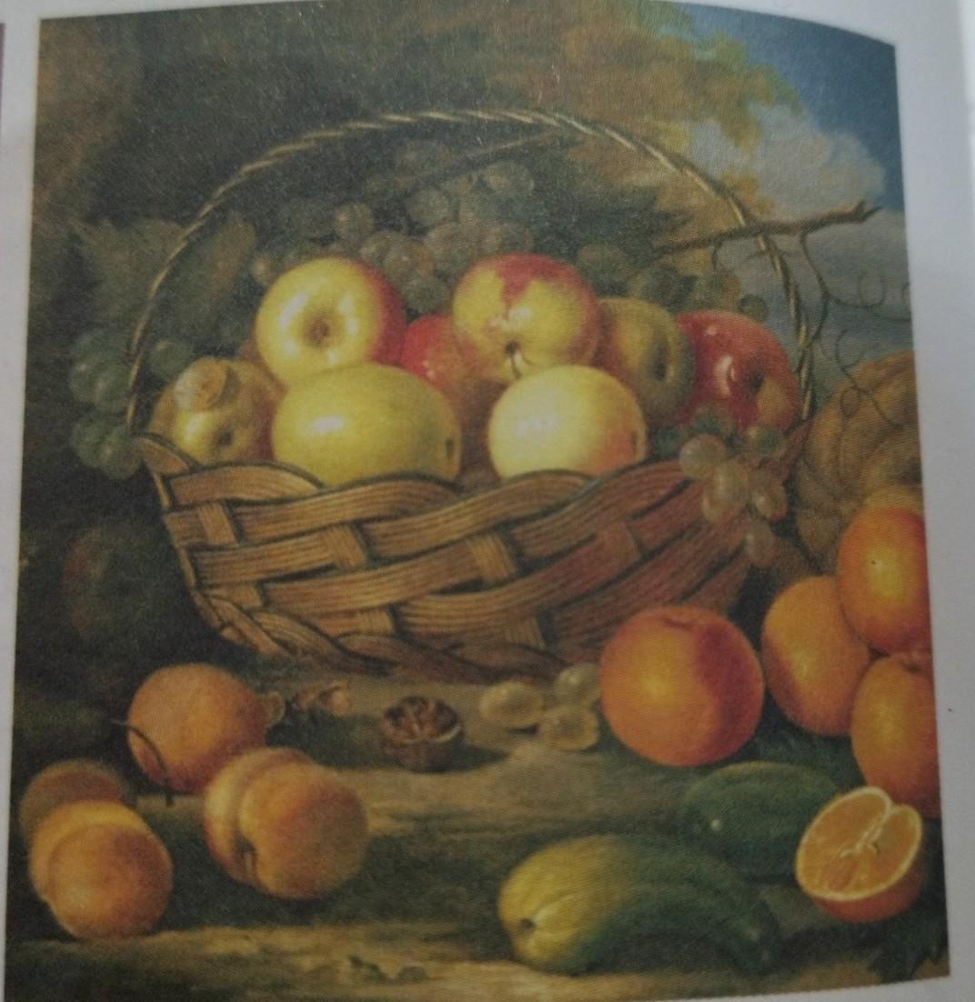 картина: на ней изображены фрукты: яблоки, виноград и апелсины. Этот вид картин называется натюрморт Натюрморты Хруцкого действительно удивляют. Он старается придать своим работам достаточно сложную композицию. На его полотне причудливым образом собирается огромное количество овощей и фруктов.