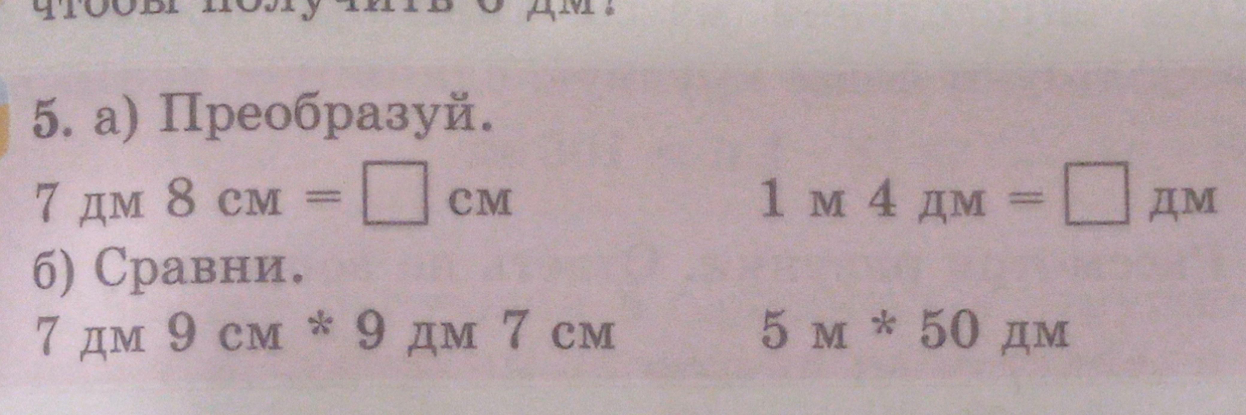 5 м(50 дм) = 50 дм
