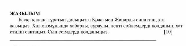 Сәлем досым сен " Менің атым Қожа" атты филімін көрдің бе? Қожа сондай бұзақы, ашуланшақ, қызғаншақбала. Ол жанарды жақсы көреді! Бірақ оған айтқан жоқ. Бұл фильм сондай қызық фильм!. Ал Жанар тәртіпті, ақылды, озат оқушы, сүйкімді қыз. Ол сонысымен Қожаға ұнаған. Бұл фильмде Жантас деген бала да бар, ол Қожаға, ал Қожа оған ұнамайды. Бірақ, екеуі де Жанарды жақсы көреді. Мен саған осы филімді көруге кеңес беремін досым. Саубол!