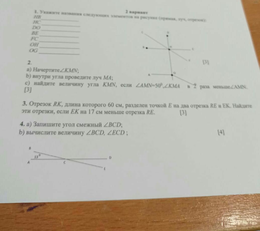 Объяснение:4. Т.к угол BCA= 13 (по условию) тогда угол DCE= 13( как вертикальные углы). ACE+BCD=360-(13+13)=334 BCD= 167