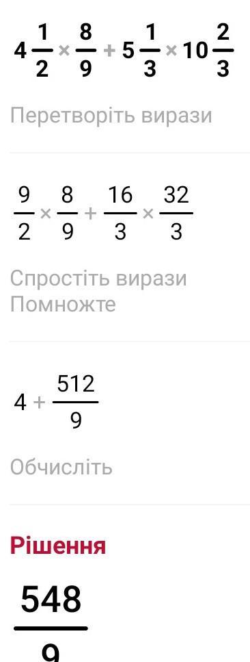 =9/2×8/9+16/3×32/3=1/1×4/1+16/3×32/3=4/1+512/9=36/9+512/9=548/9=60 8/9