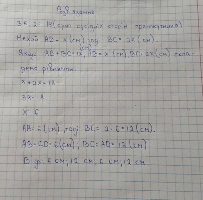 Периметр прямоугольника равен 36 см Найдите его стороны если одна сторона в два раза больше другой стороны .помогите пожалуйста!!!!!
