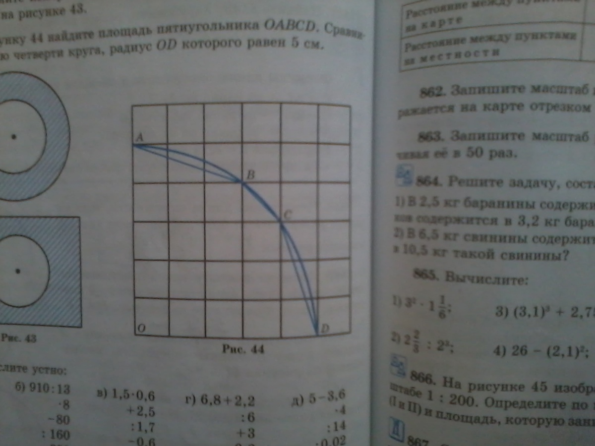 По рисунку 41 найдите площадь пятиугольника ОАВСD.Сравните ее с площадью четверти круга ,радиус ОD которого равен 5 см.