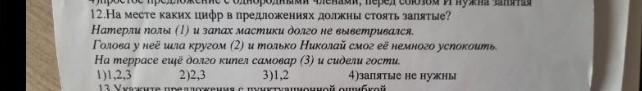 12. На месте каких цифр в предложениях должны стоять запятые?