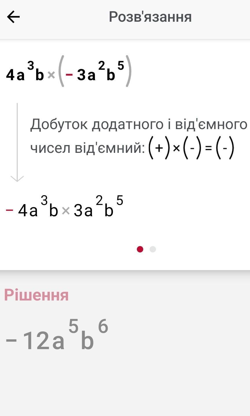 4a³b * (- 3a²b⁵) = - 12a³⁺²b¹⁺⁵ = - 12a⁵b⁶