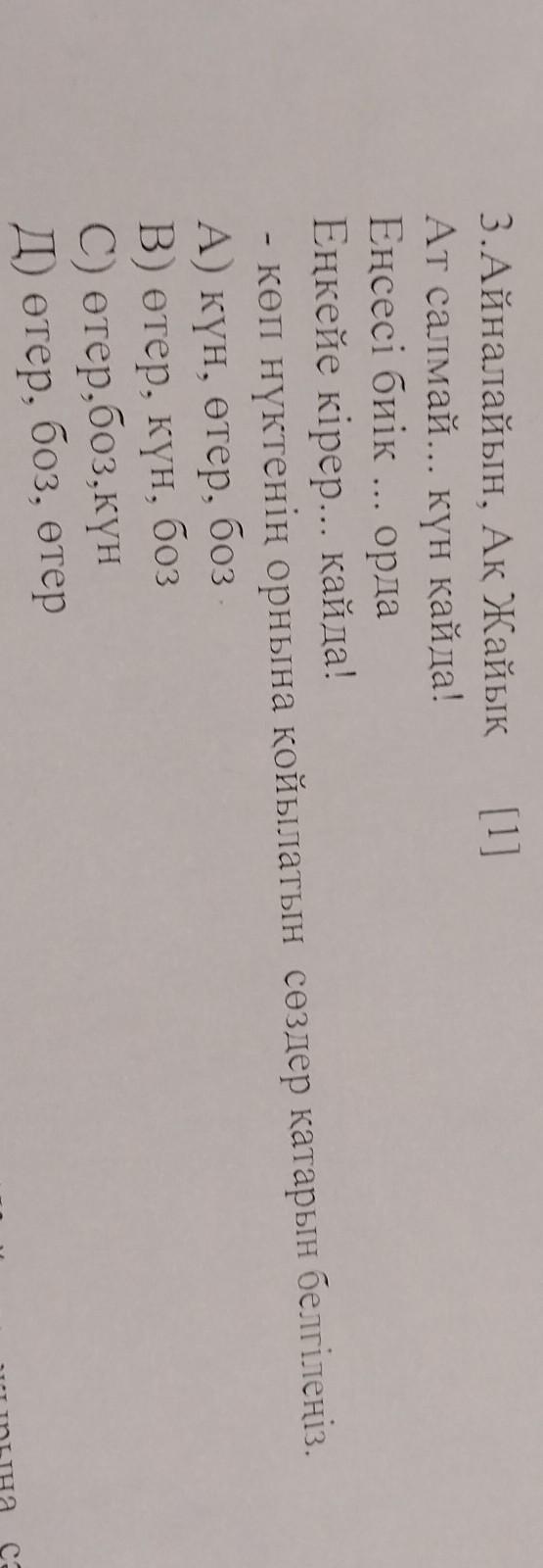 -көп нүктенің орнына қойылатын сөздер қатарын белгілеңіз.