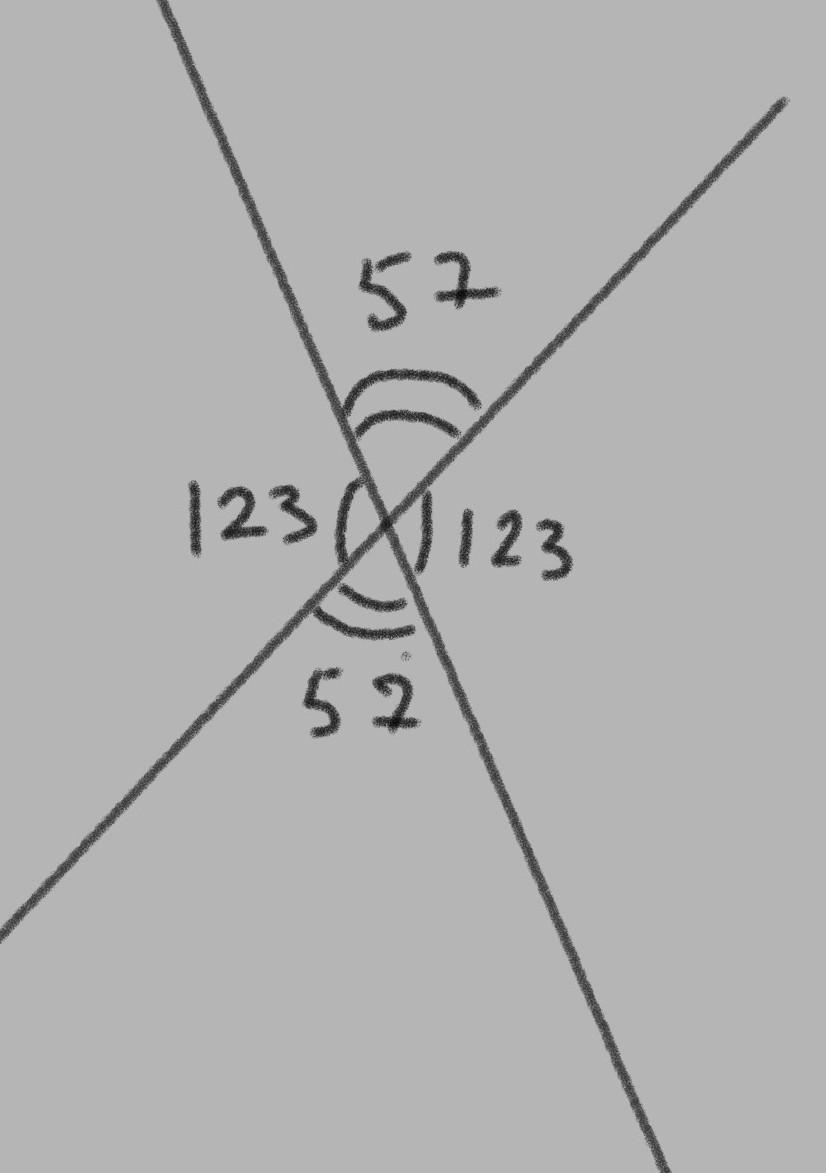 при перетині двох прямих утворяться вертикальні кути, протилежні кути яких рівні, а сума всіх кутів 360