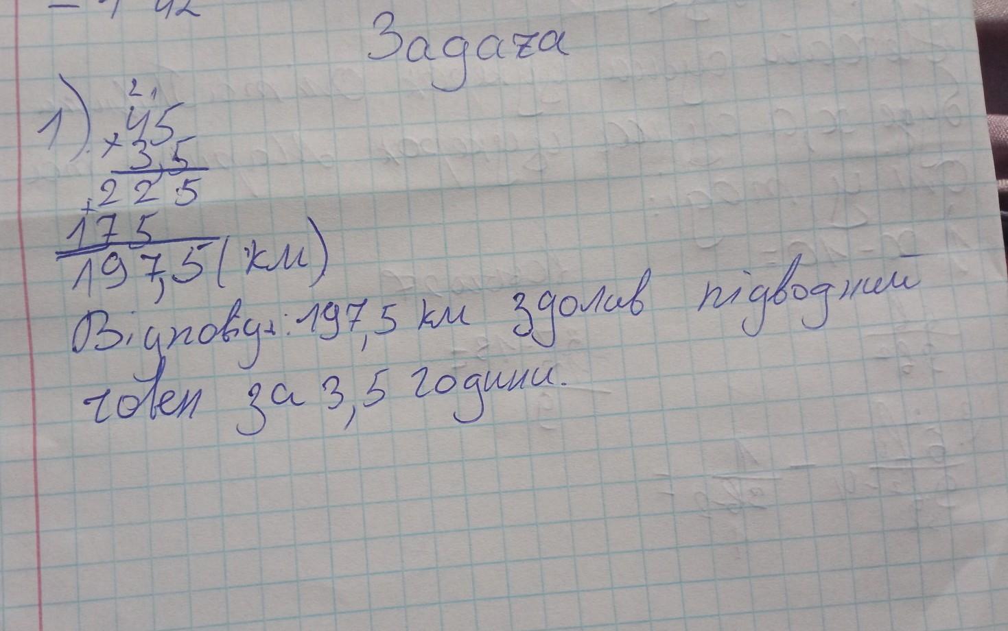 1)45•3,5=157,5(км)-здолав човен за 3,5 год.
