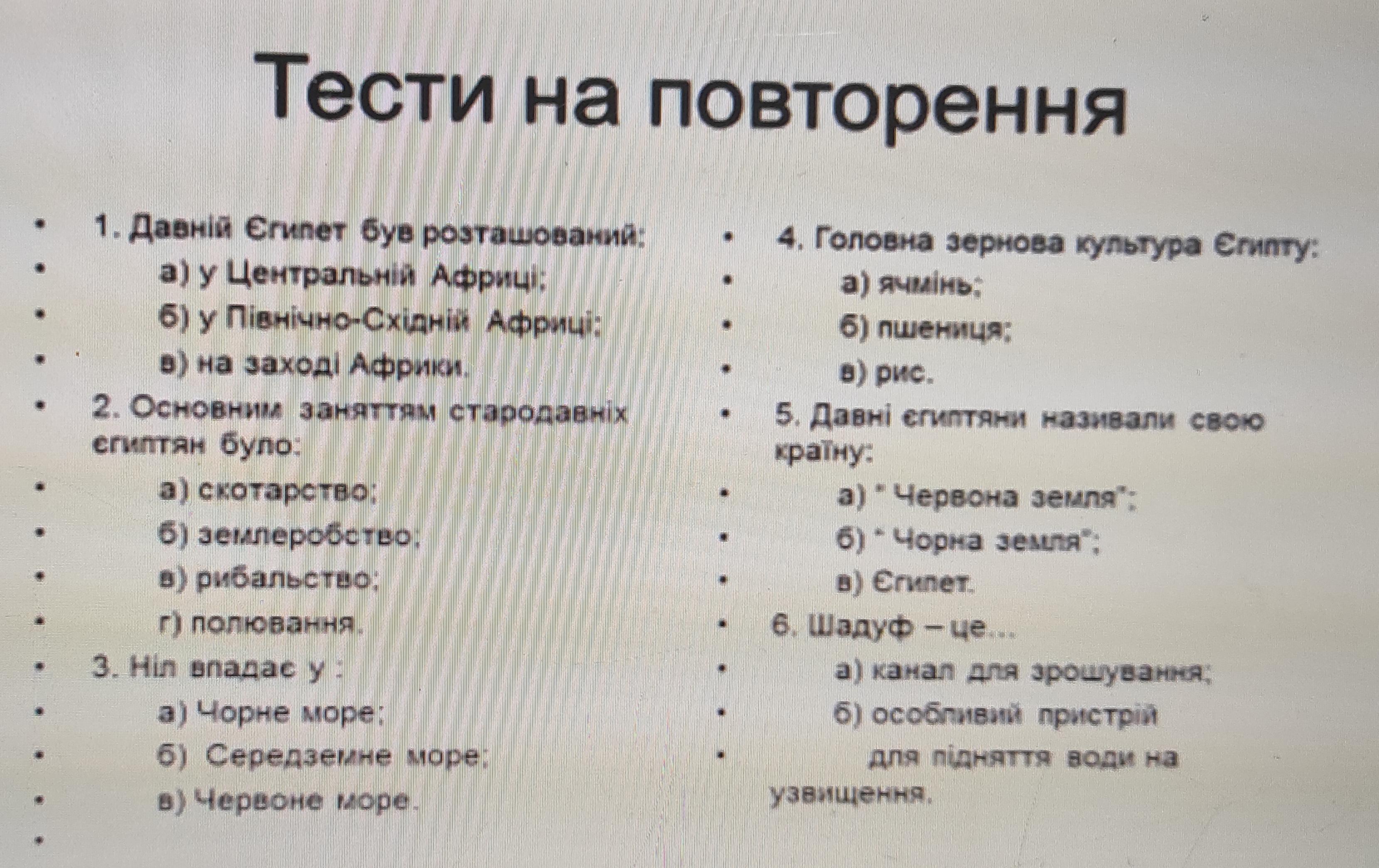відповіді брала з книги, ну кожне питання по одному, тому повинно бути правельне
