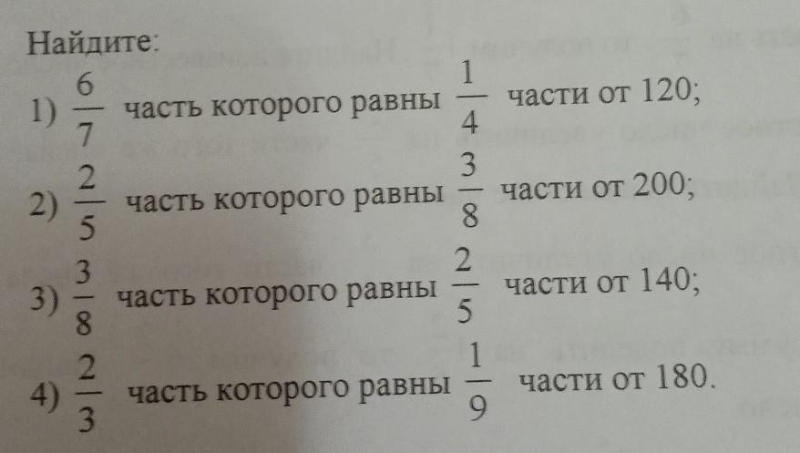 2) 2/5 часть которого павны 3/8 от 200.3)3/8 часть которого равны 2/5 части от 140.4)2/3 часть которого равны 1/9 части от 180 плииииз