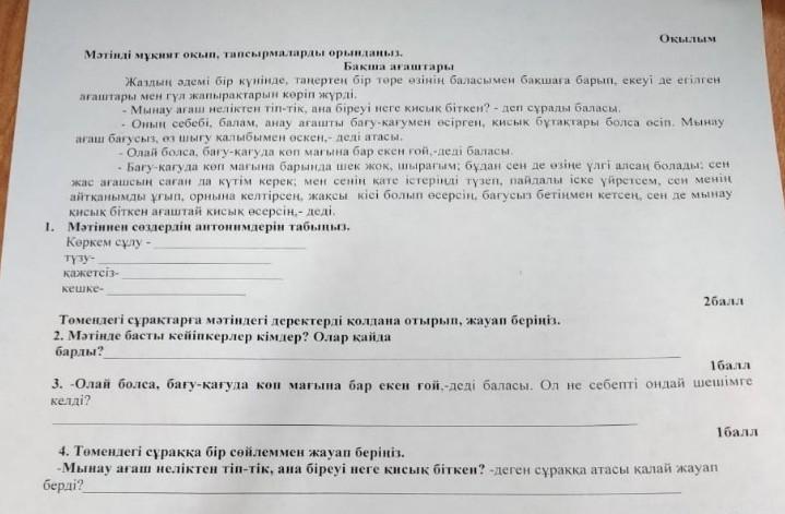 4 Атасы : түзу болып өскен ағашқа күтім жасалғанын айтты сонда жақсы ағаш болғанын, ал қисық ағашқа күтім жасалмаған , дұрыстап бағылмағандықтан қисық екенін айтты.