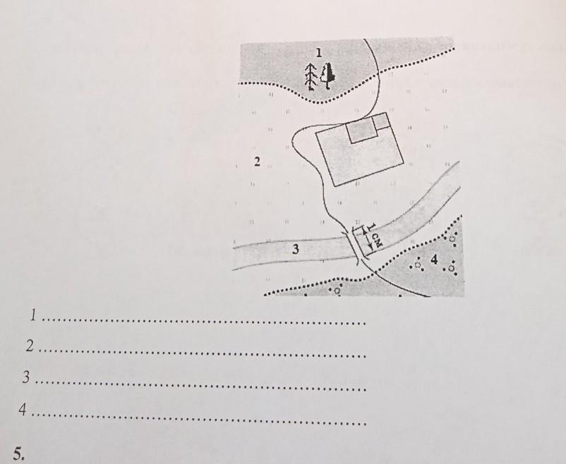 4. Изучив план данной местности, определите условные обозначения, обозначенные цифрами 1, 2, 3, 4.