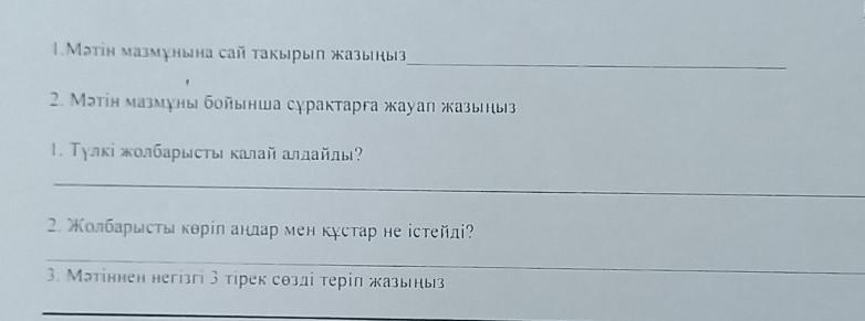 1.Мәтін мазмуына сай такырып жазы 2. Мәтін мазмуны бойынша сурактарга жауап жазыныз