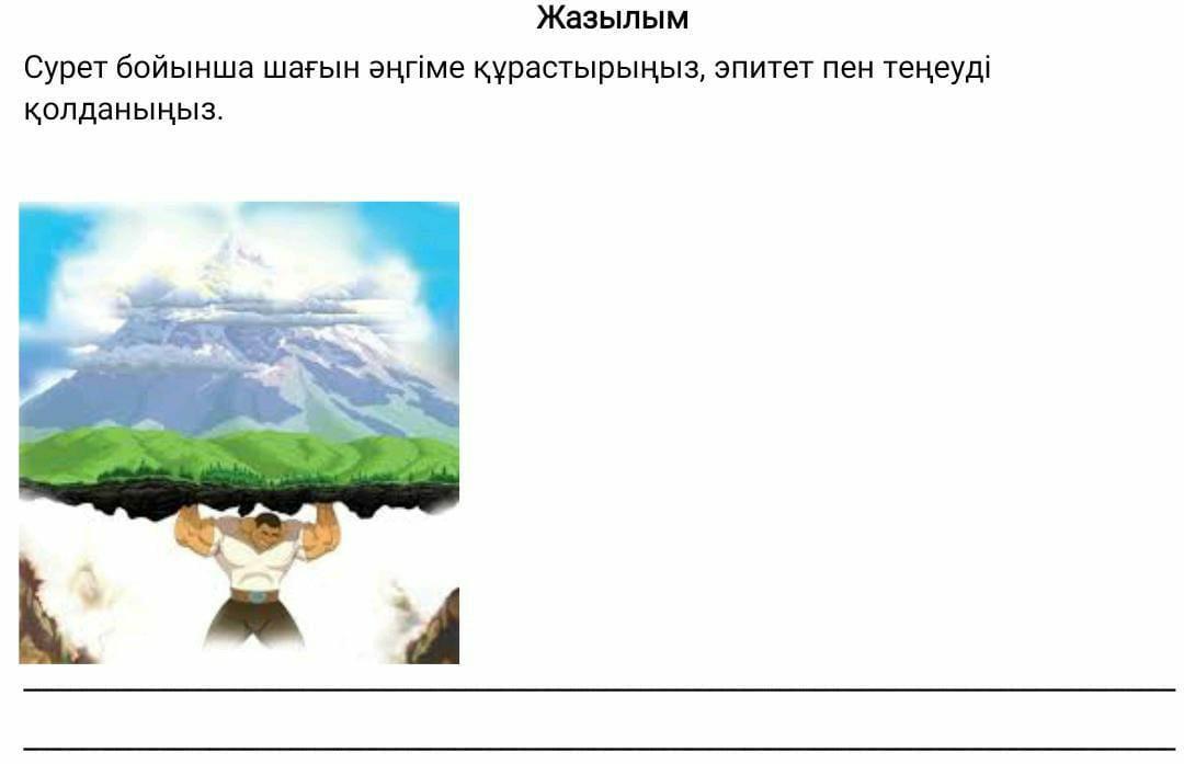 Жазылым Сурет бойынша шағын әңгіме құрастырыңыз, эпитет пен теңеуді қолданыңыз. 5 класс