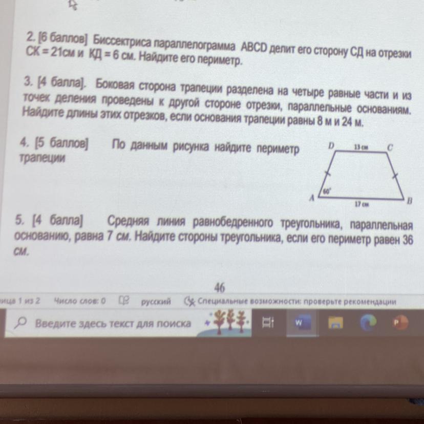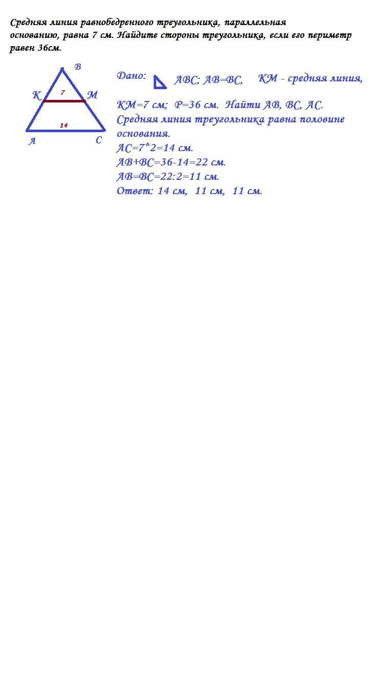 Задание 5. Средняя линия равнобедренного треугольника, параллельная