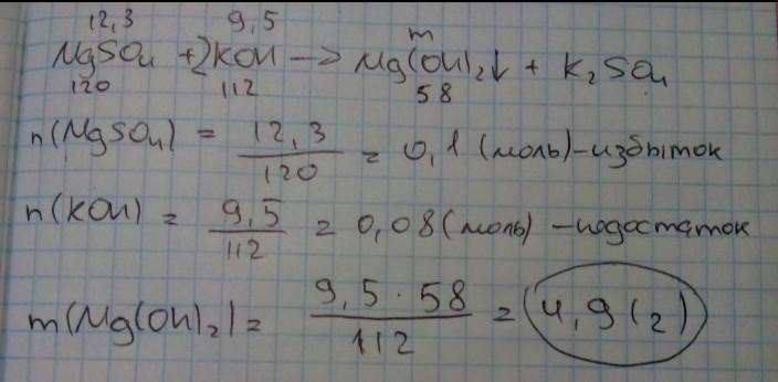 Смешали два раствора, содержащих соответственно 20,3 г хлорида бария и 9,5 г сульфата калия. Вычислите массу образовавшегося сульфата бария.