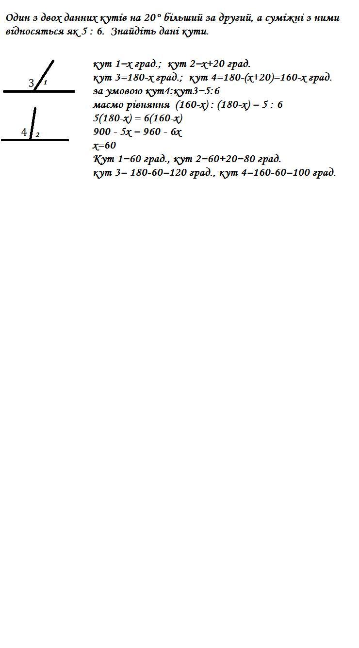 СРООЧЧНОО ДАЮ 200 БАЛЛОВОдин з двох данних кутів на 20° більший за другий, а суміжні з ними відносяться як 5 : 6 Знайдіть дані кути