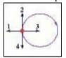 5. Тіло рухається рівномірно по колу в напрямку годинниковою стрілкою. Як спрямований векторприскорення при такому русі? A) 1 Б) 2 B) 3 Г)4