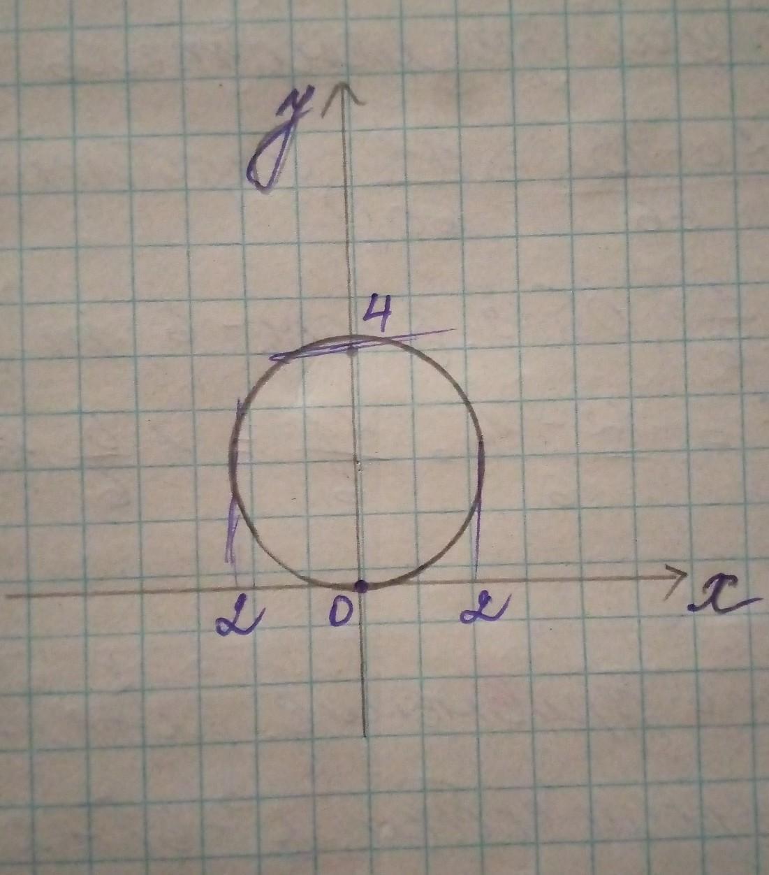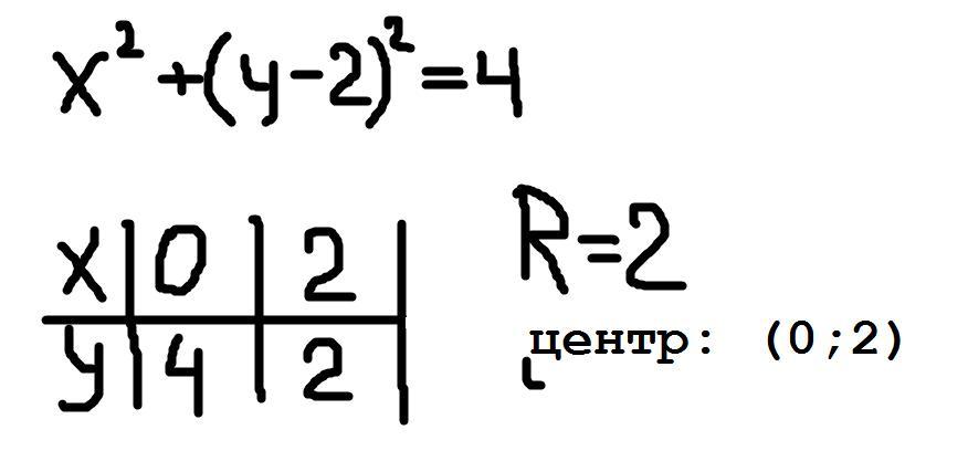 x²+(y-2)²=4; (х-0)²+(у-2)²=√4;