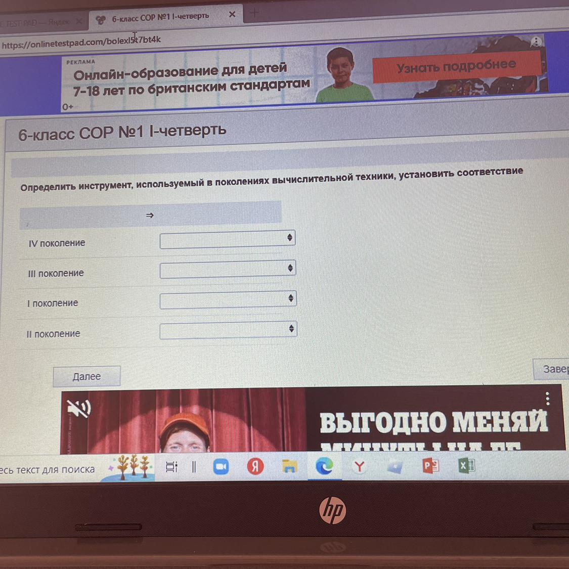 Определить инструмент, используемый в поколениях вычислительной техники, установить соответствие