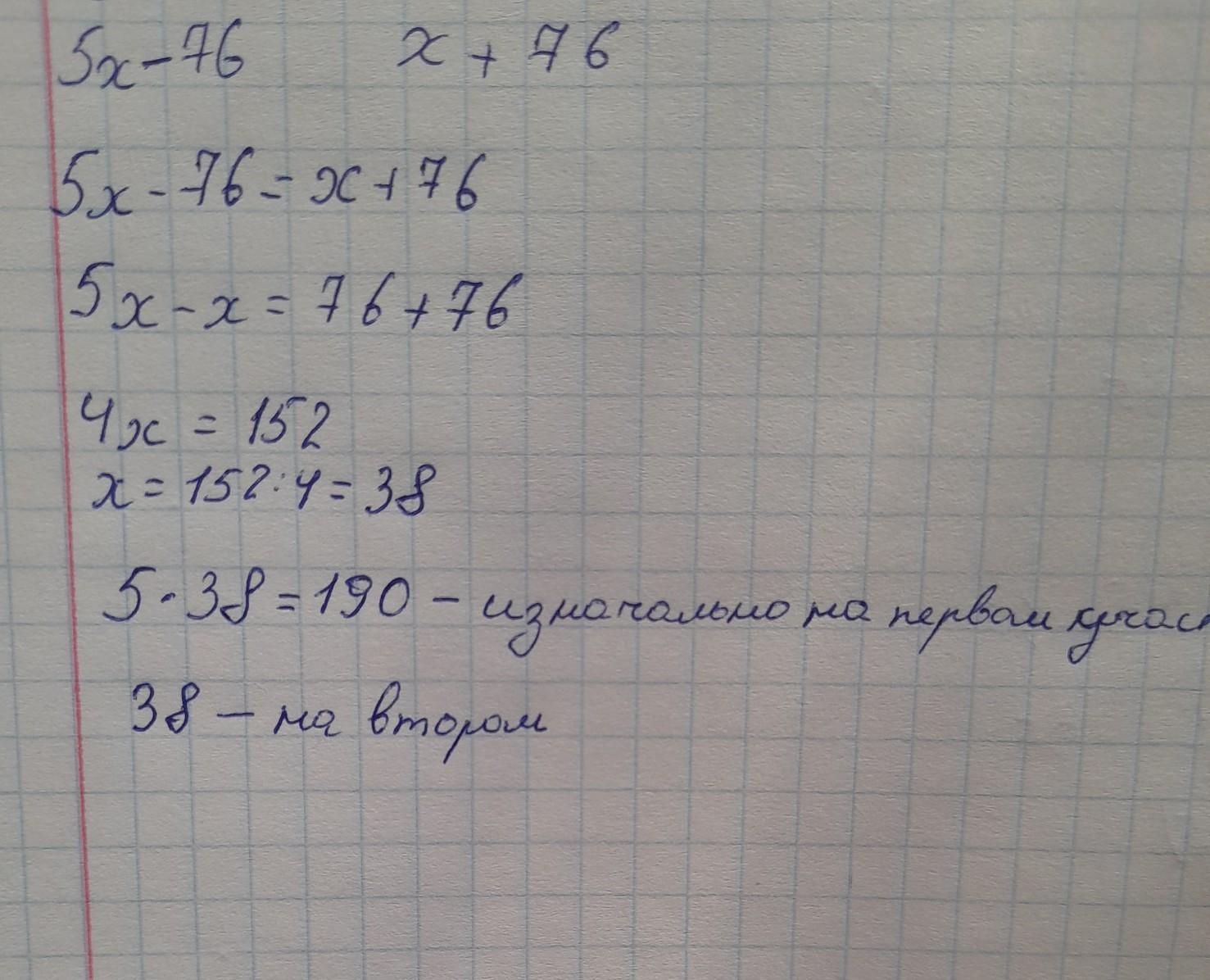 ПОМОГИТЕ ПЛИИИИИЗЗЗ ДАЮ 20 БАЛЛОВ На одном садовом участке в 5 раз больше кустов малины, чем на другом. После того как с первого участка пересадили на второй 76 куста(-ов), на обоих участках кустов малины стало поровну. Сколько кустов малины было на каждом участке? Ответ: изначально на первом участке было а на втором кустов(-а) малины. кустов(-а) малины,