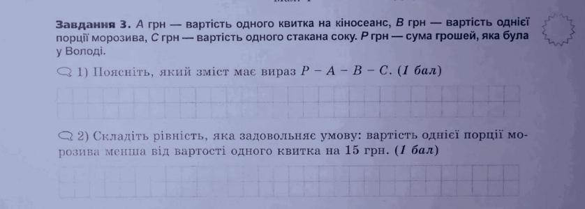 Відповідь::2.вартість квитка<порція морозива