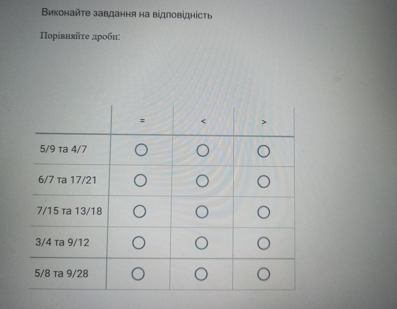 1)5/9 больше 2)17/21 больше 3)13/18 больше 4)9/12 больше 5)9/28 больше