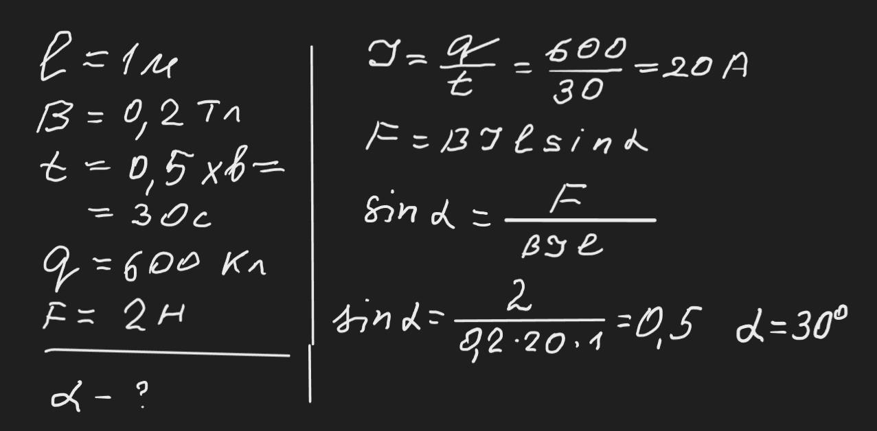 Визначте кут між напрямом струму й вектором магнітної індукції,