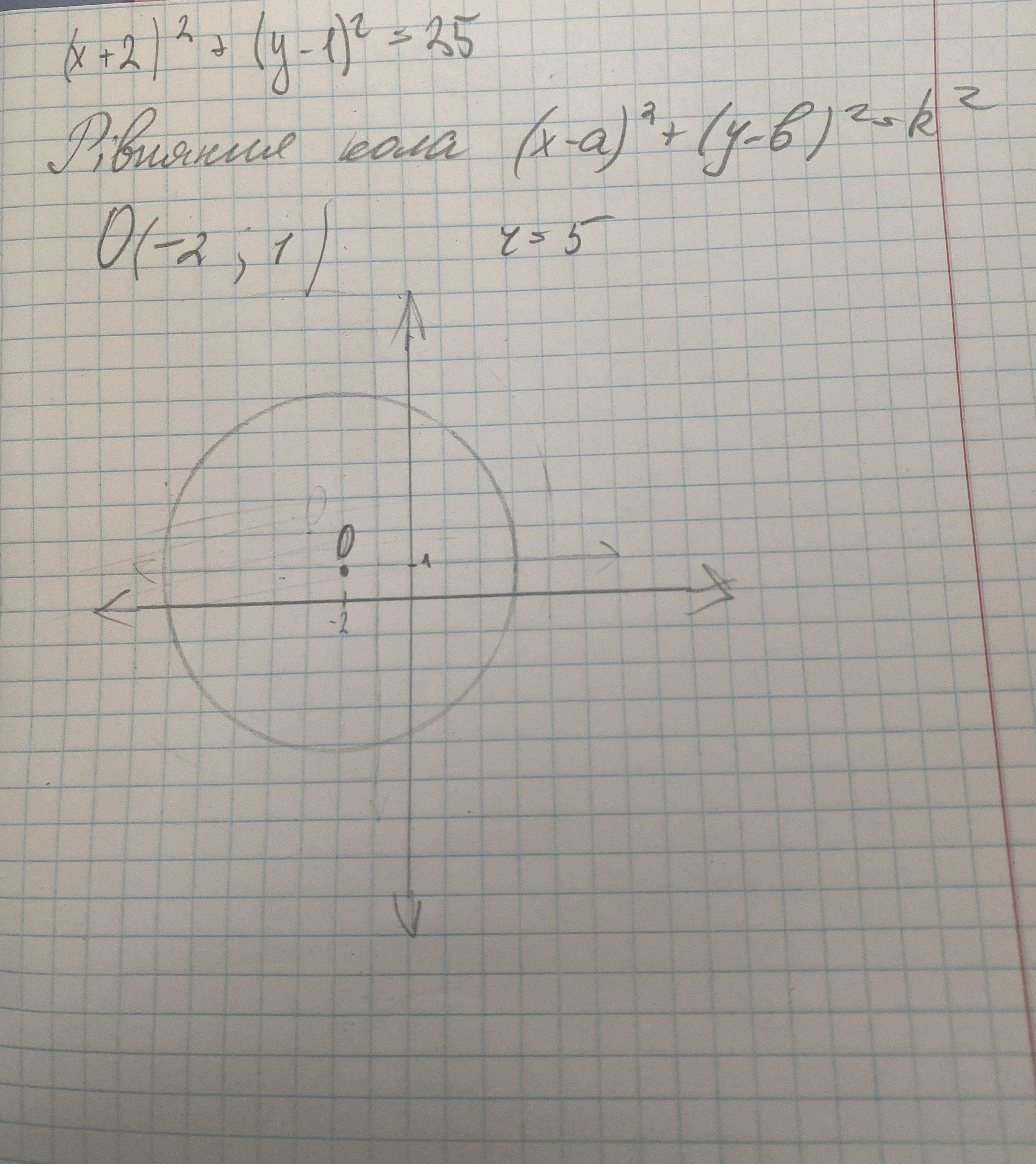 пробудуйте на координатній площині фігуру, задану рівнянням (x + 2) в квадраті + (y - 1) в квадраті = 25