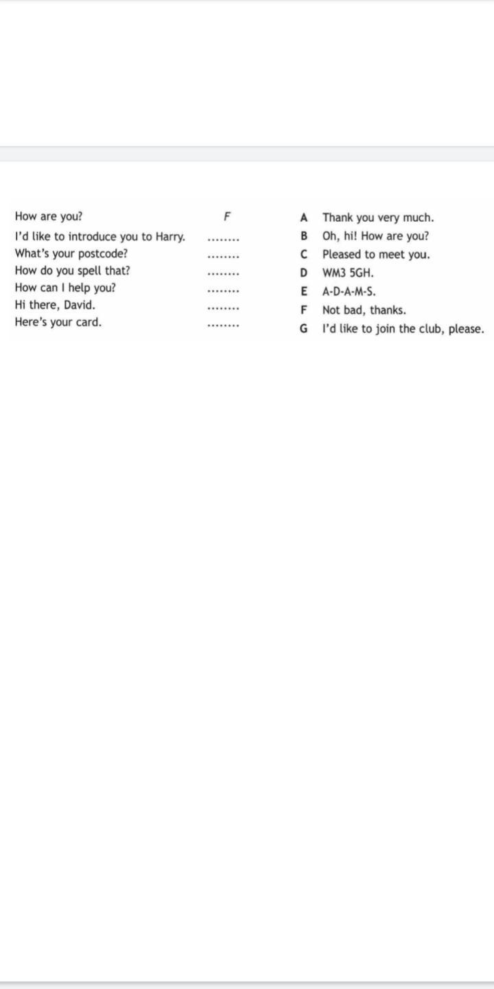 I'd like to introduce you to Harry. C) Pleased to meet you