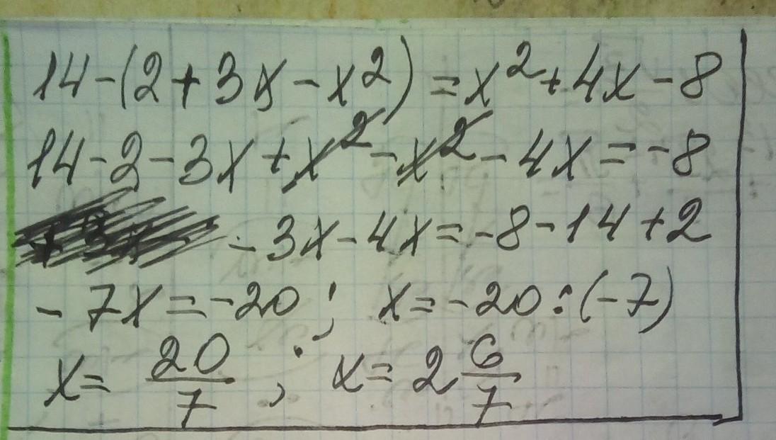 14 - (2 + 3х - х2) = х2 + 4х - 8.