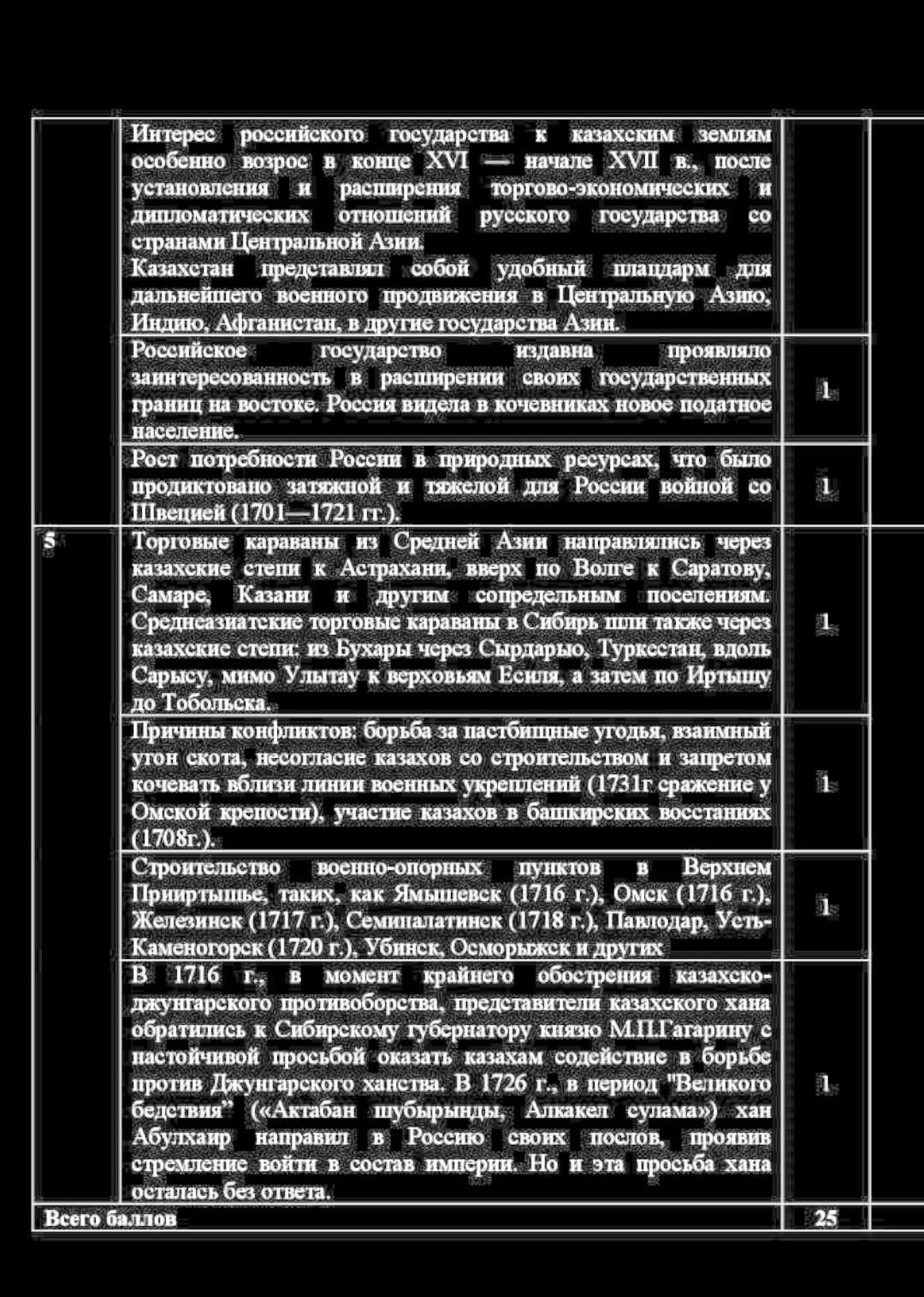5. Заполните таблицу. Приведите на каждый пункт по одному факту, подтверждающему развитие русско-казахских отношений. 1) Развитие торговых отношений 2) Приграничные конфликты 3) Строительство военных укреплений 4) Дипломатические отношения A) B) C) D) [6]