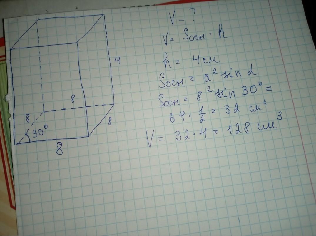 дорівнює α. Менша діагональ паралелепіпеда дорівнює d і утворює з