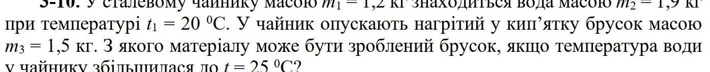 при температурі ti 20 °C. У чайник опускають нагрітий у кип’ятку брусок масок