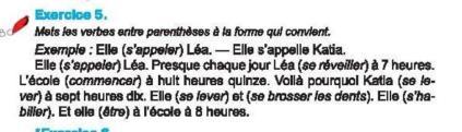 Elle s'appelle Léa. Presque chaque jour Léa se réveille à 7 heures. L'école commence à huit heures quinze. Voilà pourquoi Katia se lève à sept heures dix. Elle se lève et se brosse les dents. Elle s'habille. Et elle est à l'école à 8 heures.