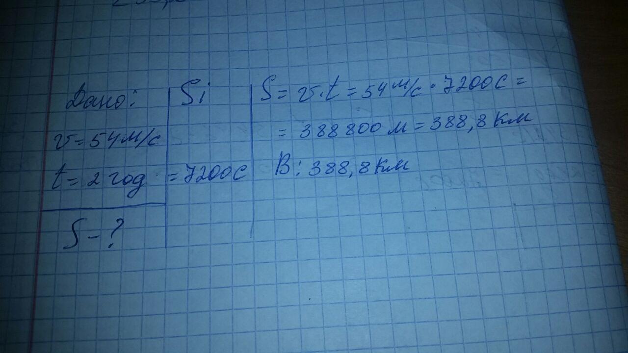 Потяг їде зі швидкістю 54м/с. Який шлях він подолає за 2 год рівномірного руху ? пжж помогите дам 100 балов